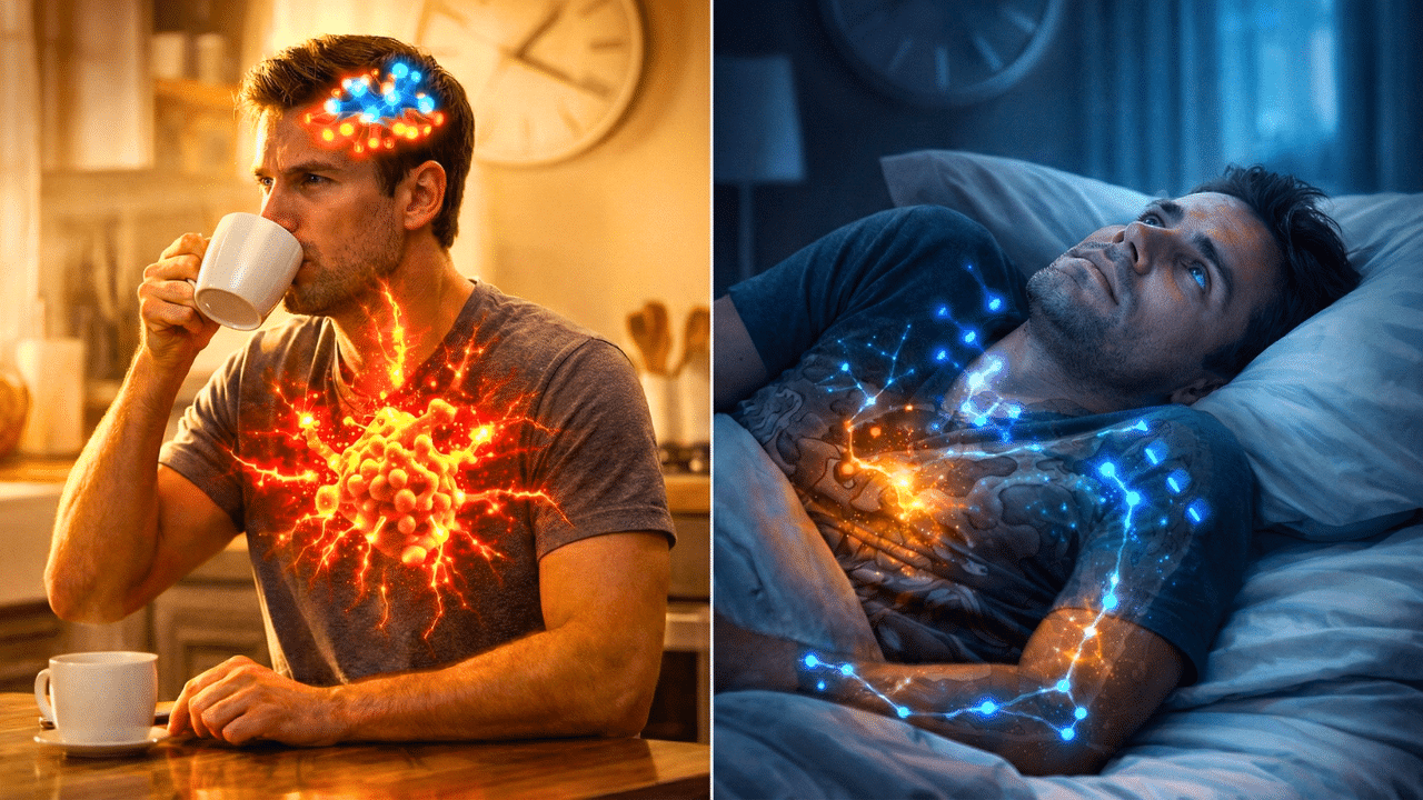 Caffeine has a half-life of about 6–8 hours, which means if you drink coffee at 3pm, half that caffeine will still be in your system at 11pm. Even if you fall asleep, the quality of your deep, restorative sleep plummets—and that impacts your metabolism, fat loss, mood, and brain function.