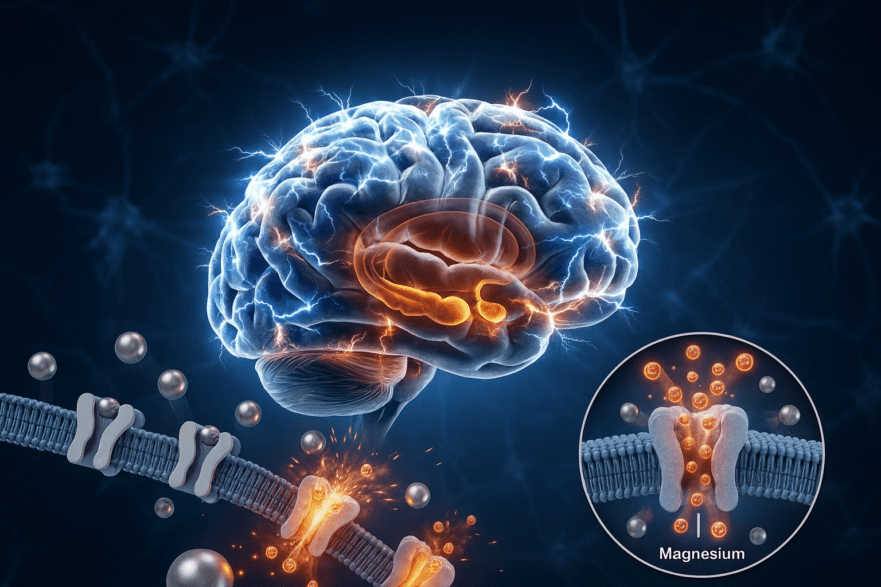 Did you know that experts say up to 90% of people are not getting enough magnesium? This mineral is vital for everything from making energy in your cells to calming your mind, stabilizing mood, and even keeping your heart beating regularly. It helps regulate calcium in the neurons, balancing your brain’s “gas pedal” (glutamate) and “brakes” (GABA). When you run low on magnesium, you might experience: