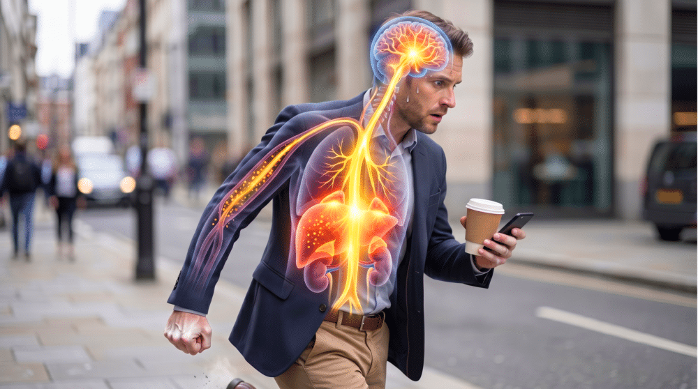 One of the most common things I hear is, “Doctor, I don’t feel stressed.” You might even believe it. But let’s look at your daily routine. Do you wake up at 4 or 5 a.m., squeeze in two hours of intense exercise, rush the kids to school, and then dive into a high-pressure job? Do you eat your lunch in five minutes at your desk because there’s no time? Do you spend your day putting out fires, only to come home, deal with more chores, and then log back on at 9 p.m. to finish work? If this sounds familiar, you’re living in a state of chronic stress, even if it has become your new normal.