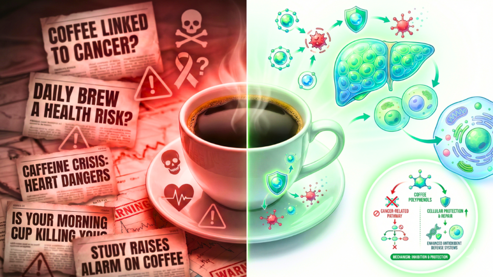 In 1981, panic hit after researchers published findings linking coffee to pancreatic cancer—a highly lethal disease. Headlines everywhere warned readers: “Coffee Might Cause Cancer!” Decades later, repeated large and rigorous studies have shown no causal link between coffee drinking and pancreatic or bladder cancer. In fact, coffee was stripped of its carcinogenic warning. Even more, new research showed coffee might lower the risk of liver and uterine cancers, meaning, for most people, coffee is not only safe, but potentially beneficial!