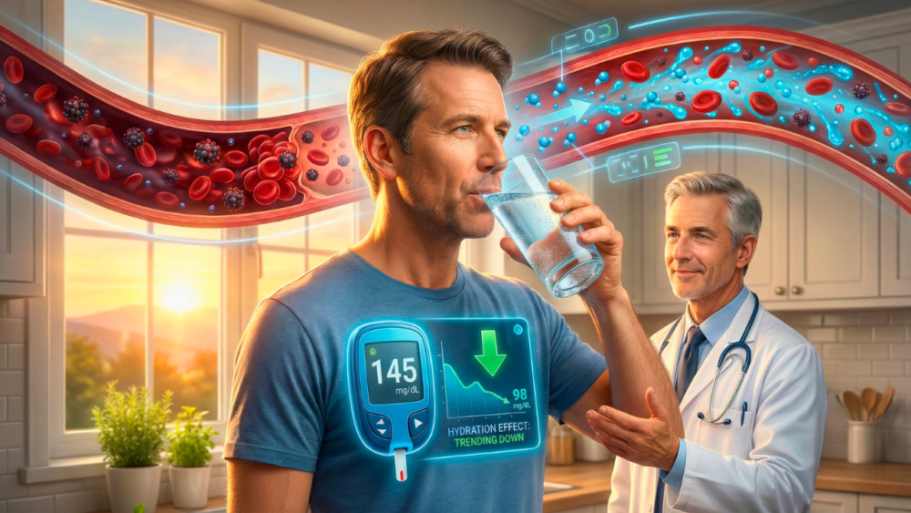 Think of your bloodstream as a river. This river’s job is to transport essential things like nutrients, hormones, oxygen, and, of course, glucose (sugar) to all your cells. Insulin acts as the key that unlocks the doors to these cells, allowing the sugar to enter and be used for energy. Now, what happens when there’s a drought and the river becomes thick, sludgy, and concentrated? Everything slows down. The flow is sluggish and forced. This is exactly what happens in your body when you’re dehydrated. Your blood volume decreases, and the concentration of glucose in it rises. In this state, insulin has to work double or triple time to try and manage the sugar traffic jam. Your body perceives this as a state of stress, which can cause the liver to release even more sugar. It’s a metabolic survival mode. In other words, when you are chronically dehydrated, your body becomes more resistant to insulin. This is where diabetes can silently worsen, not because of what you ate, but because of what you didn’t drink.