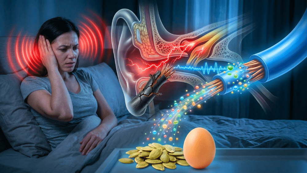 • The 2-Food Solution: A simple, daily habit of eating one handful of raw, unsalted pumpkin seeds (for zinc) and one whole egg (for B12) can help correct these deficiencies and reduce tinnitus.
